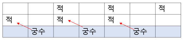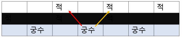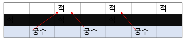- 가운데 궁수의 입장에선 두 적의 위치는 동일하기 때문에 가장 왼쪽의 적을 공격해야 합니다.